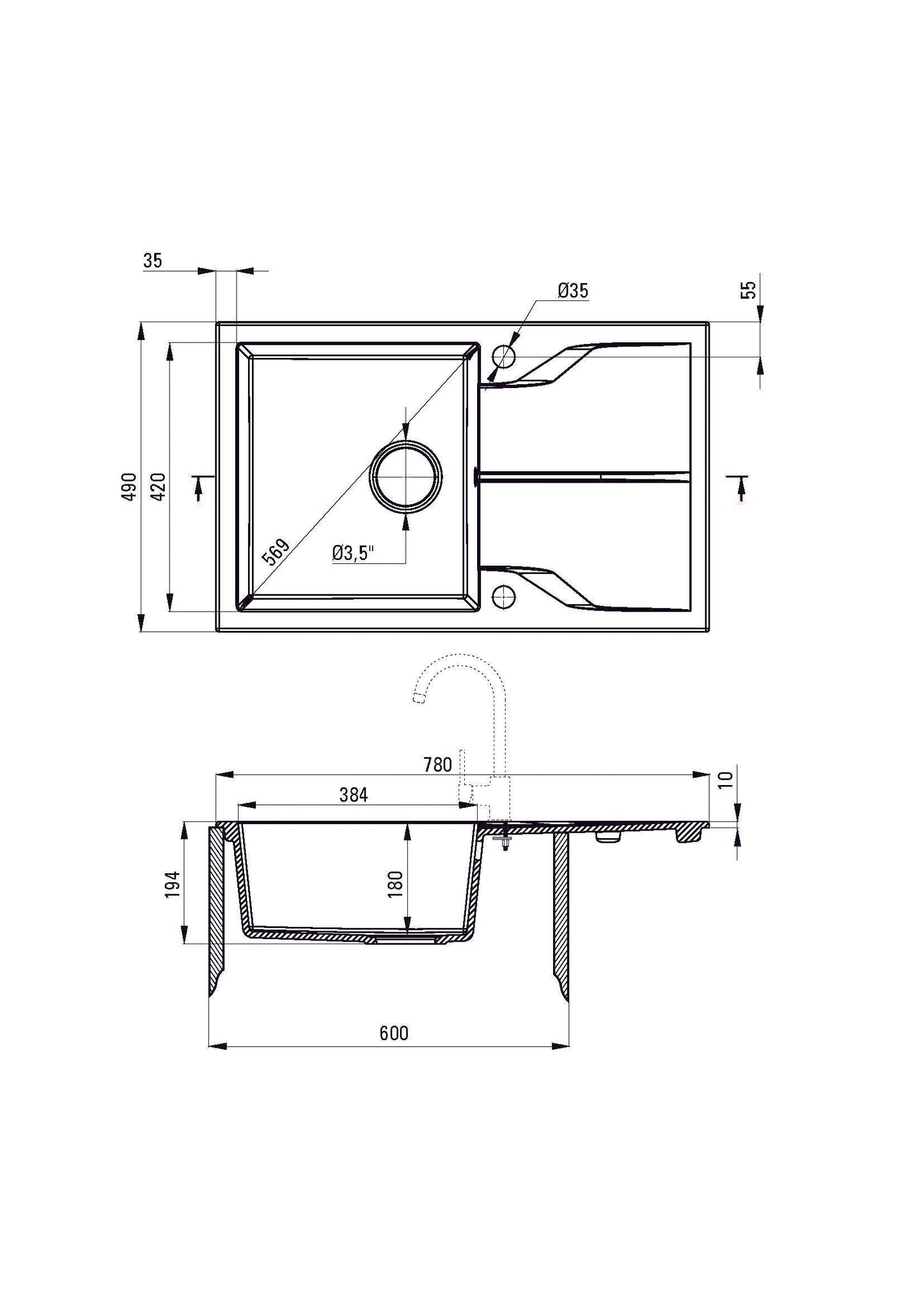| Diameter of the drain | 3.5" |