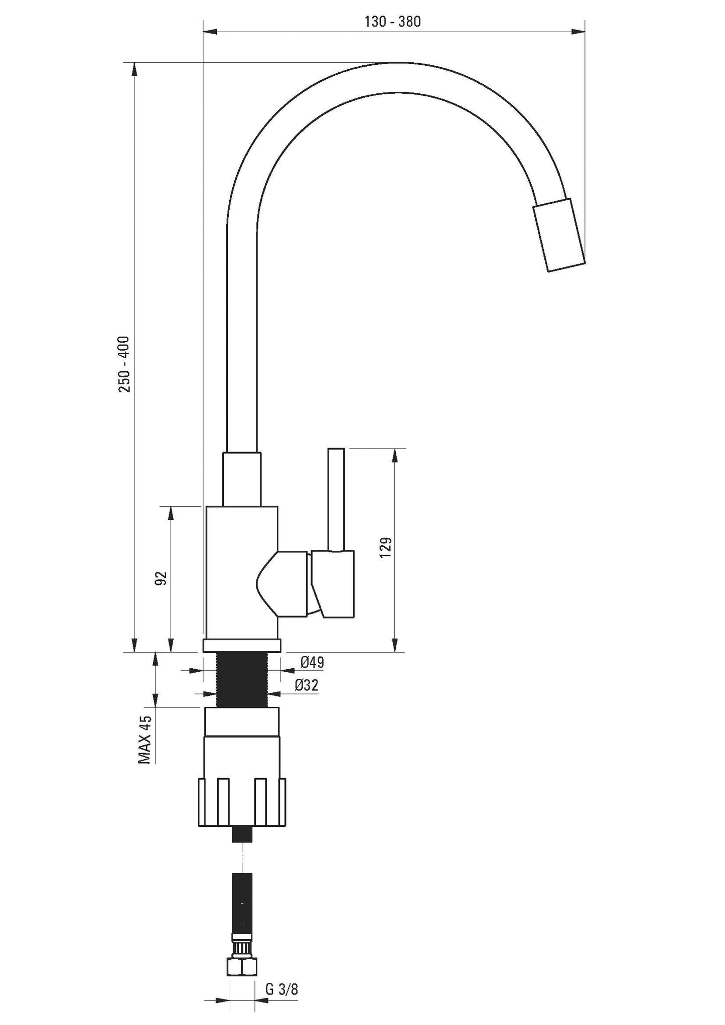 | Installation thread | 3/8'' |