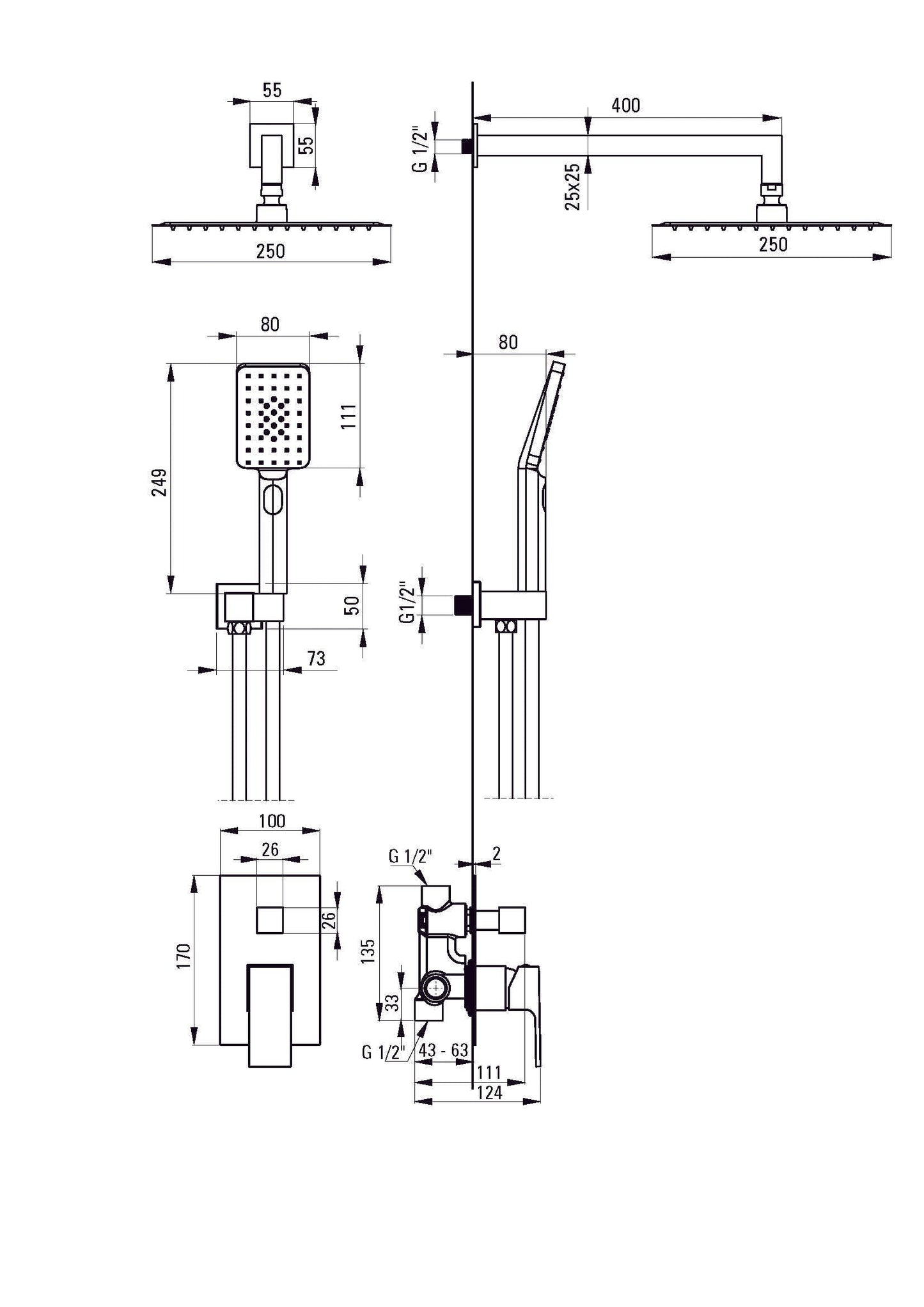 | Projection of the shower faucet/bath faucet [mm] | 400 |