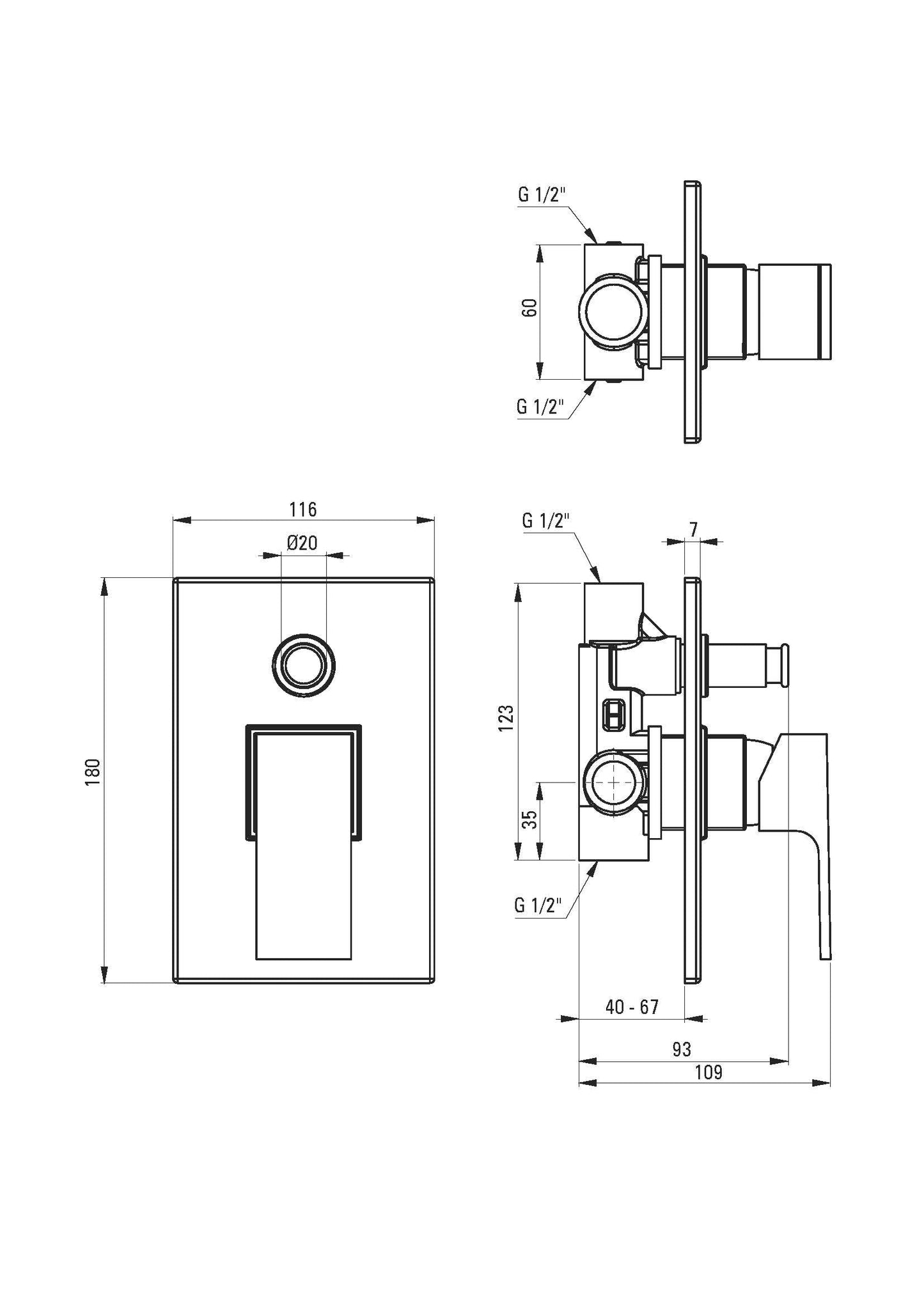 The set includes concealed elements – a faucet with a function switch, a top-mounted shower head, and a hand shower with a connector. It's ideal for people who don't have time to search for individual concealed components. The model contains all the necessary elements, perfectly coordinated both functionally and aesthetically. The Anemon concealed set is an excellent choice for lovers of cubist shapes and striking interior accents.