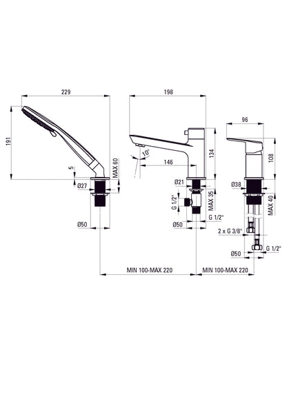 This elegant 3-hole bath faucet, crafted from durable brass and finished in polished chrome, is the perfect combination of durability and style. Its key feature is the practical ceramic function switch, which allows for easy switching of the water flow between the spout and the hand shower. Ideal for any bathroom, it offers not only functionality but also a sophisticated look.