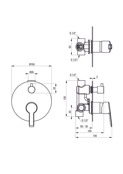 The Arnika collection's concealed shower faucet is the perfect combination of contemporary design and functionality. The elegant, striking brushed gold finish adds a unique, contemporary touch to the bathroom. The faucet's geometric shapes, inspired by the Danish concept of happiness, allow for the creation of a harmonious and modern bathroom. The mechanical jet switch allows for easy switching between rain and hand shower.