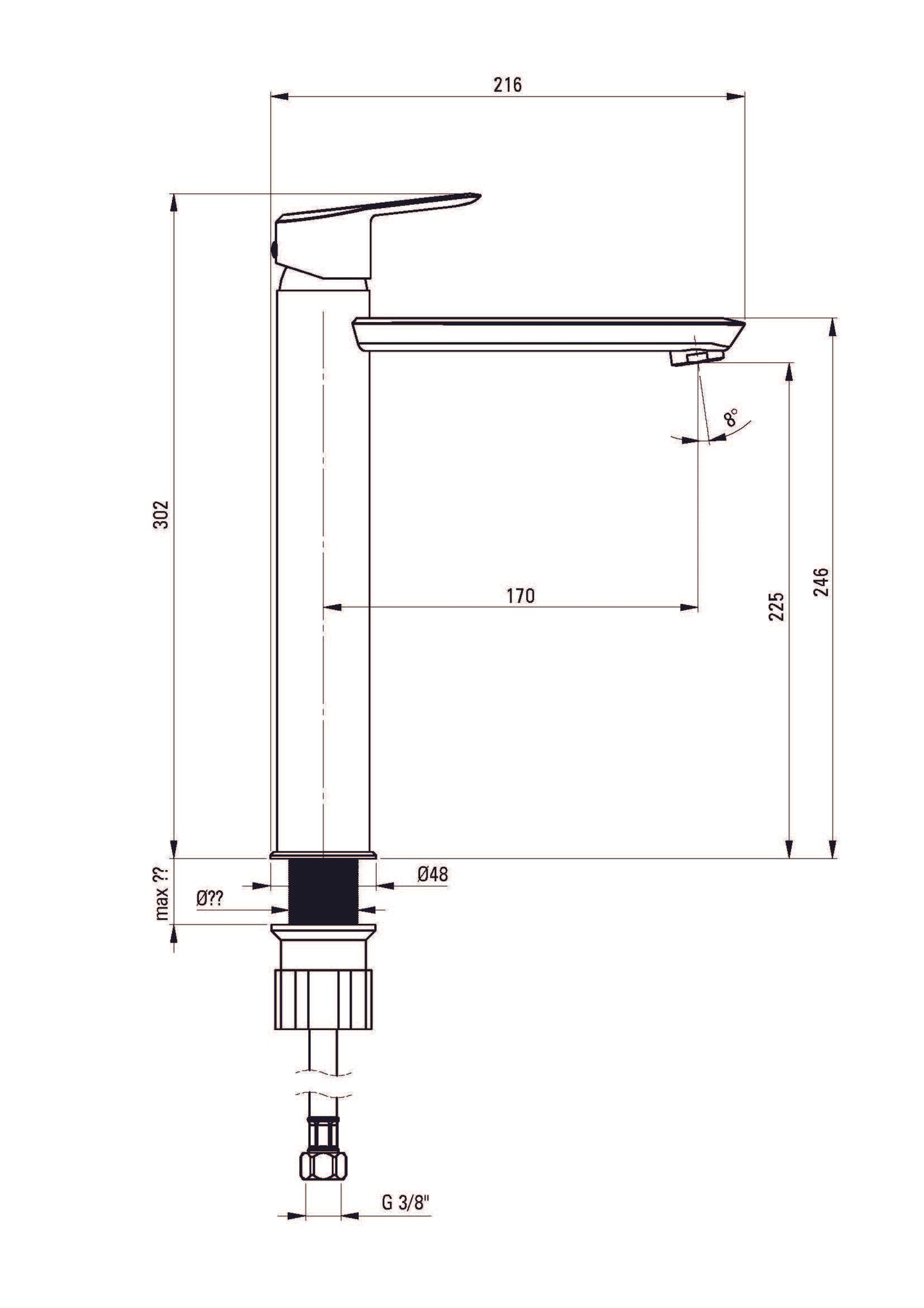 - Type of mixing system: single lever