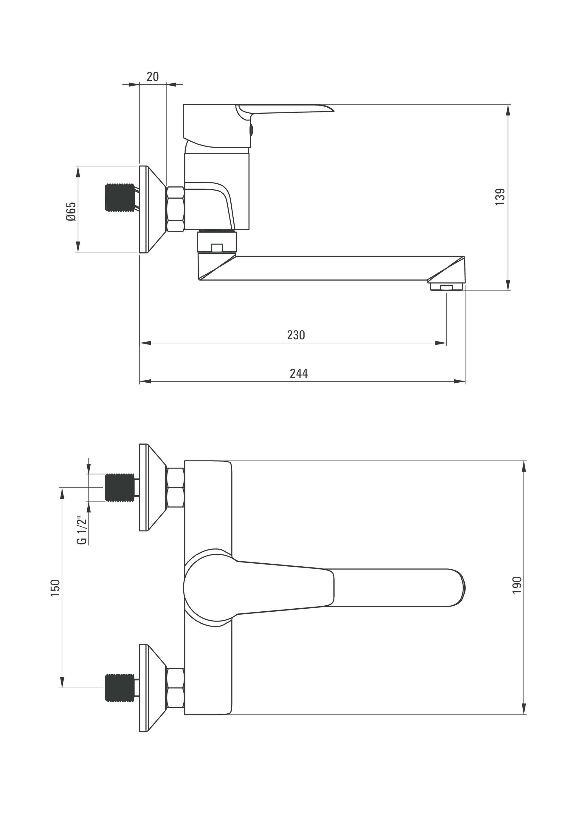 The Corio wall-mounted basin mixer with ECO head and extra-long spout (23 cm) features a classic, ecological, and economical design in polished chrome. The ECO click ceramic head allows the user to intuitively position the mixer lever in two specially designed and convenient positions for economical water consumption. Furthermore, the system allows the flow to be blocked in the first position, reducing consumption by up to 50%. This solution is ideal for public buildings, hotels, or homes where ecology and economy are important. Thanks to the aerator, the water droplets are better aerated, and the jet itself has a larger volume, further reducing water consumption.