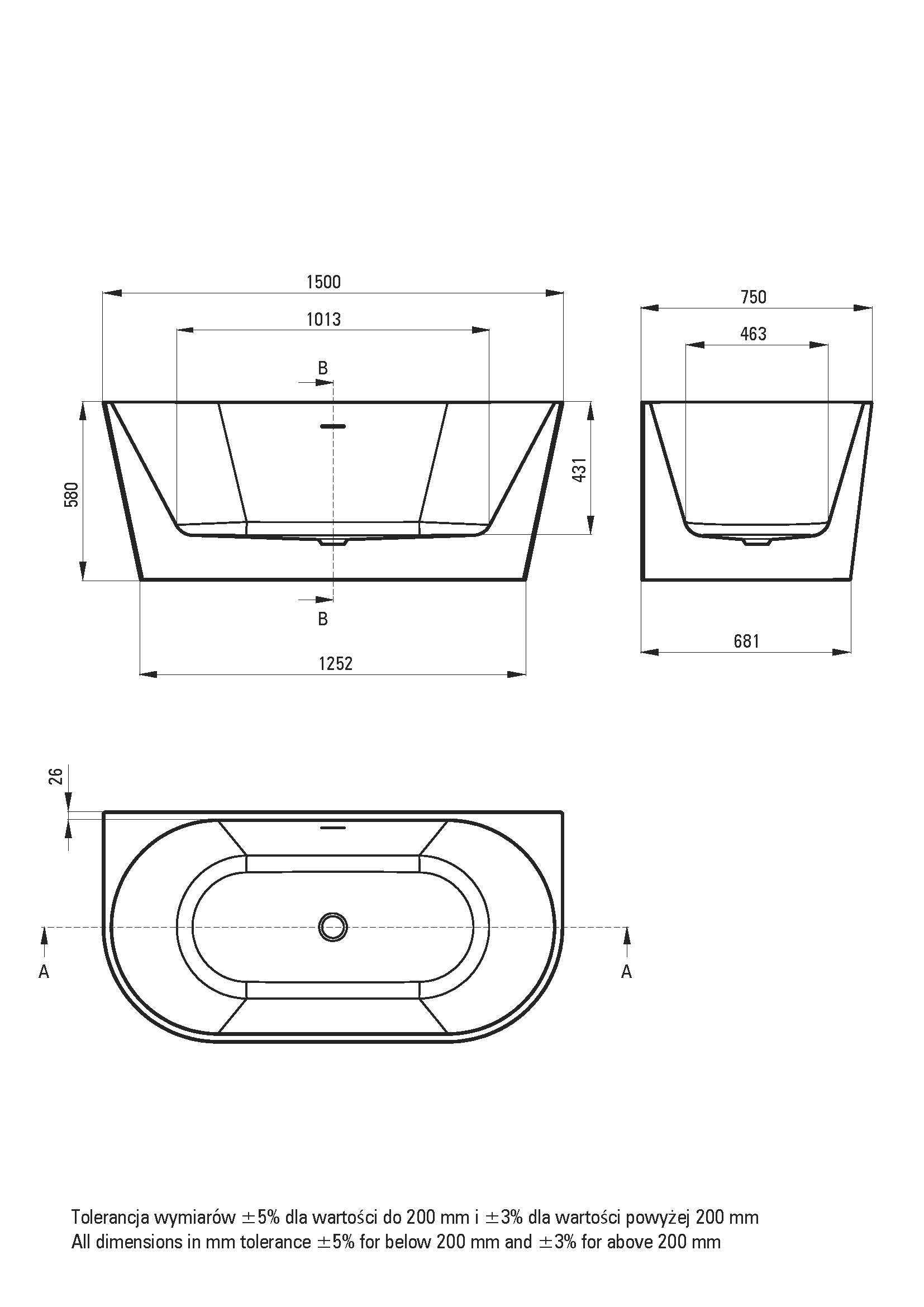 DEANTE Silia Wall-mounted or Freestanding Bathtub - 150 cm // White // KDS-015W