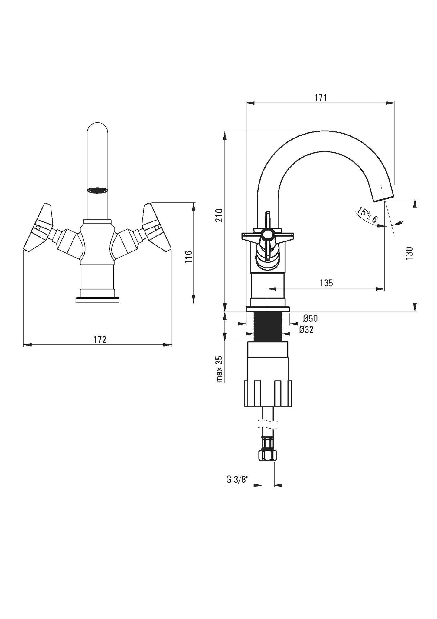 This low basin mixer, which can be mounted on the sink or countertop, is a perfect example of retro design with a modern twist. While this series is inspired by retro-style interiors, it's equally well-suited to classic bathrooms as it is to modern or loft-style ones. Featuring a beautifully rounded, high spout and hot and cold water knobs, the mixer is also equipped with a movable aerator that allows you to direct the water stream in the desired direction. The aerator also aerates the drops, making the water stream more even and voluminous while using less water. The collection from which this mixer comes has received awards such as Must Have 2020, "Żazienka" - Choice of the Year 2020, and Top Design 2020, confirming the highest product quality and excellent design.