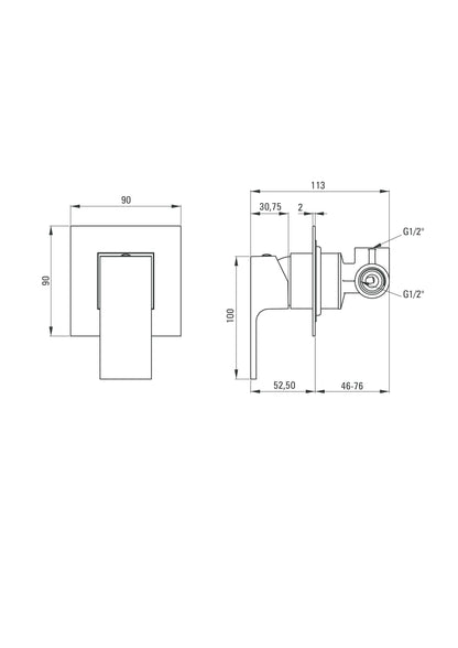 El mezclador de ducha empotrado sin interruptor de la colección Anemon Nero es una excelente opción para baños modernos que valoran las formas cubistas y los toques de diseño interior audaces. Es fácil de instalar, extremadamente estético y minimalista, y destaca por su palanca plana. Este mezclador complementa los demás elementos de la colección Anemon Nero, caracterizados por sus formas geométricas y líneas definidas y definidas. Combinado con su lujoso acabado negro, el mezclador es una incorporación impactante a los interiores de baños modernos y combina especialmente con encimeras de madera o piedra o azulejos blancos minimalistas.