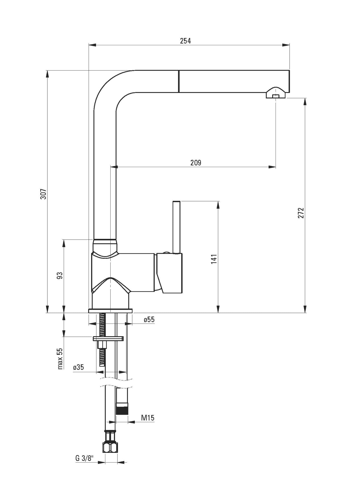 - Grifo con cabezal de ducha extraíble