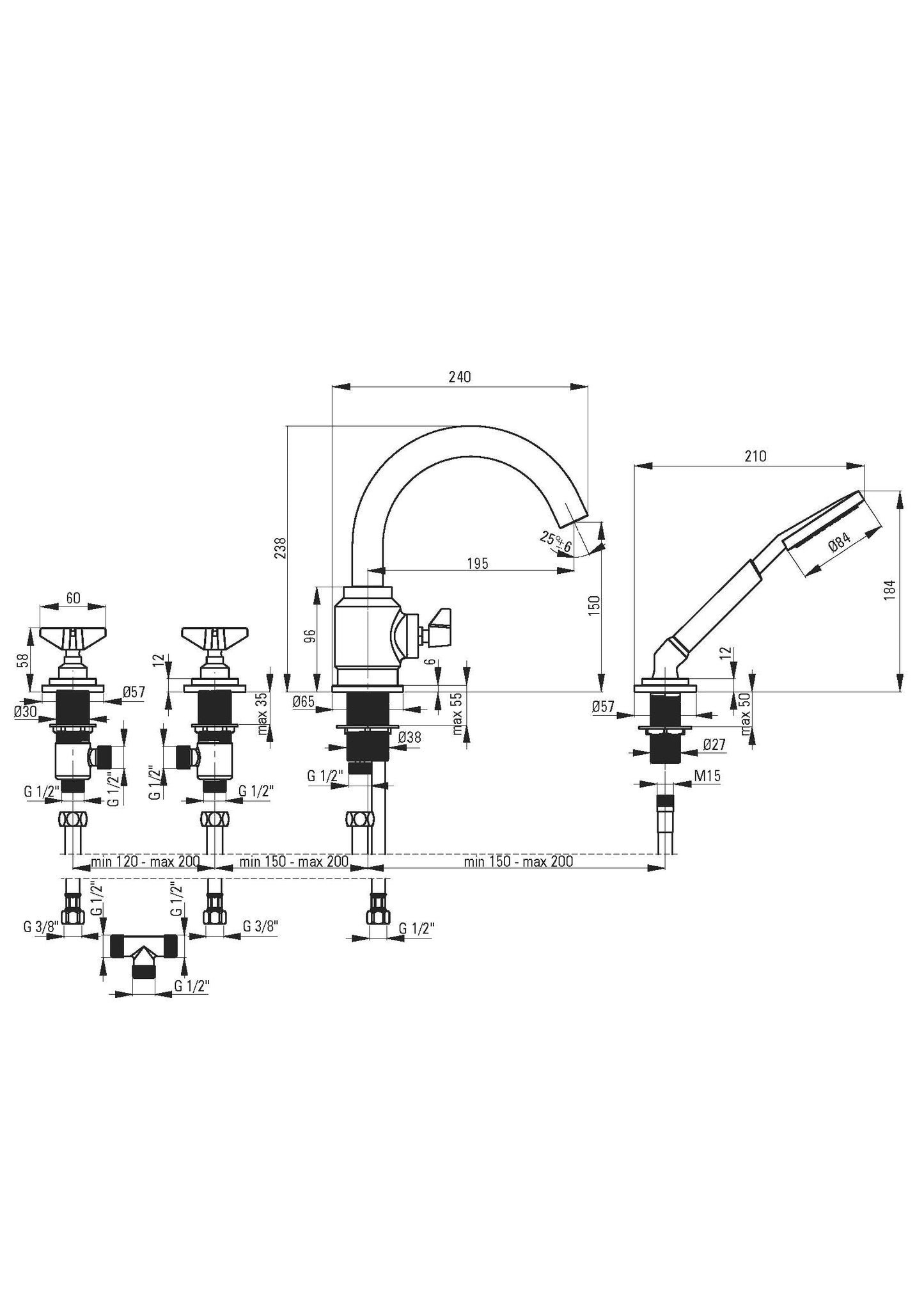DEANTE Temisto Mezclador de bañera de 4 orificios con set de ducha // Nero // BQT-N14D