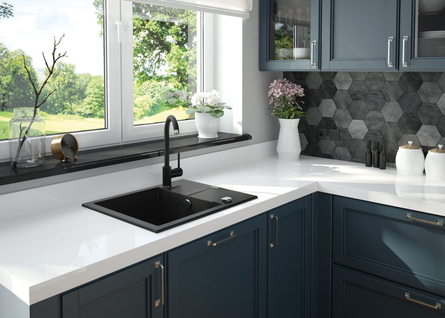 Die Granitspüle Andante ist eine elegante Ergänzung für jede Küche. Sie zeichnet sich durch ihre rechteckige Form und das markante anthrazitfarbene Finish aus. Die geprüfte Widerstandsfähigkeit des Granits bietet höchsten Schutz vor hohen Temperaturen, Temperaturschocks und Stößen – gemäß der europäischen Norm **PN-EN 13310**. Dadurch bleibt die Spüle über die gesamte Nutzungsdauer hinweg in einwandfreiem Zustand. Doch nicht nur die ästhetischen Eigenschaften überzeugen. Die Spüle verfügt zudem über eine hochwertige Ausstattung mit vielseitigen Funktionen. Im Lieferumfang enthalten sind eine Armatur mit automatischem Ablaufverschluss sowie der praktische **Space-Saver-Siphon**, der wertvollen Stauraum unter der Arbeitsplatte schafft..