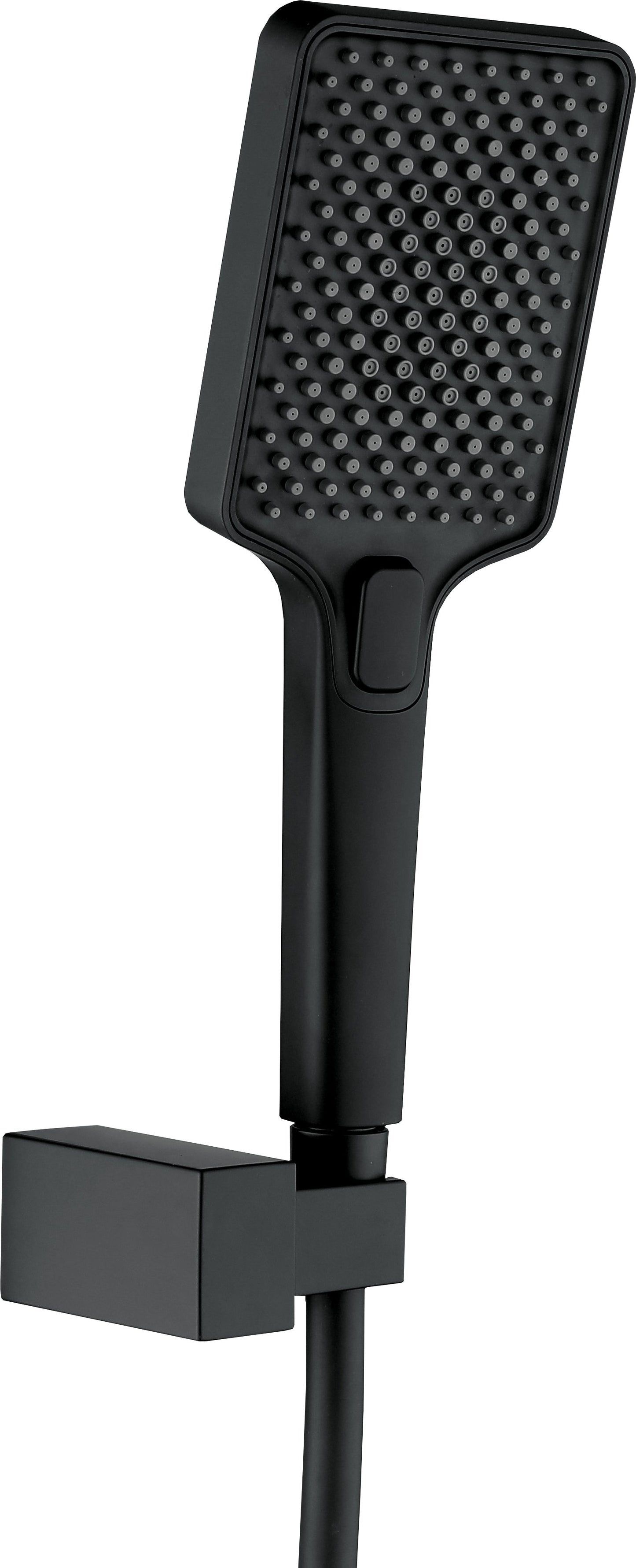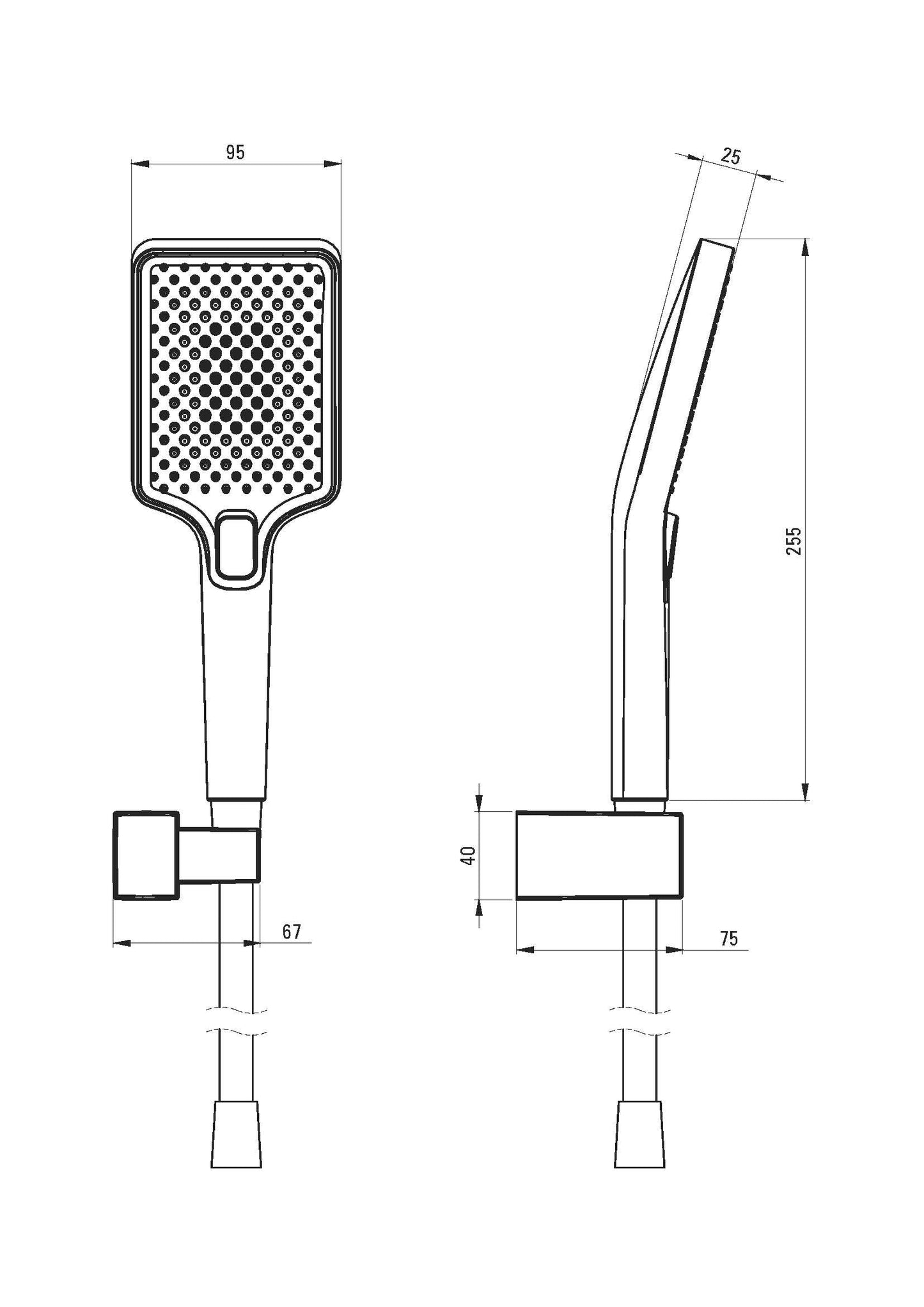 Das Set besteht aus einer Handbrause mit Halterung und Schlauch. Die Handbrause verfügt über vier Strahlarten: Regenstrahl, zwei kombinierte Strahlen und eine Hydromassage-Funktion. Sie ist mit einem Anti-Calc-System ausgestattet, das Kalkablagerungen verhindert. Das gesamte Set ist in elegantem Mattschwarz gehalten. Es ist zur Montage mit einer Wannen- oder Duscharmatur vorgesehen.