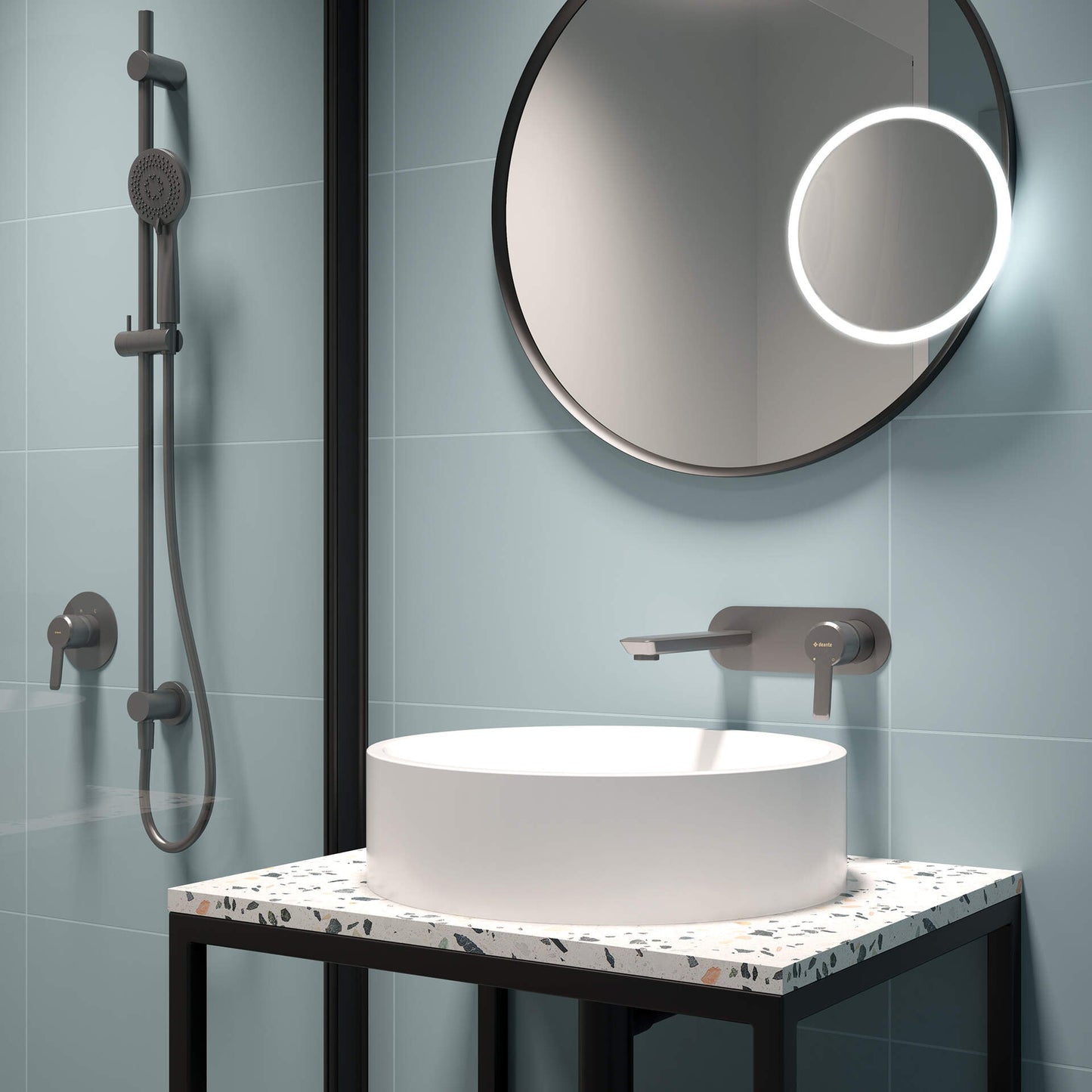 Die graphitfarbene Oberfläche der Deante Titanium Armaturen ist das Ergebnis einer innovativen Technologie. Sie ist ein spektakulärer Kompromiss zwischen Grau, dunklem Graphit, Schwarz und sogar einem dezenten Braunton - eine hervorragende Dekoration für jedes Interieur. Die Oberflächenstruktur ist langlebig, leicht zu reinigen und unempfindlich gegen Fingerabdrücke.
