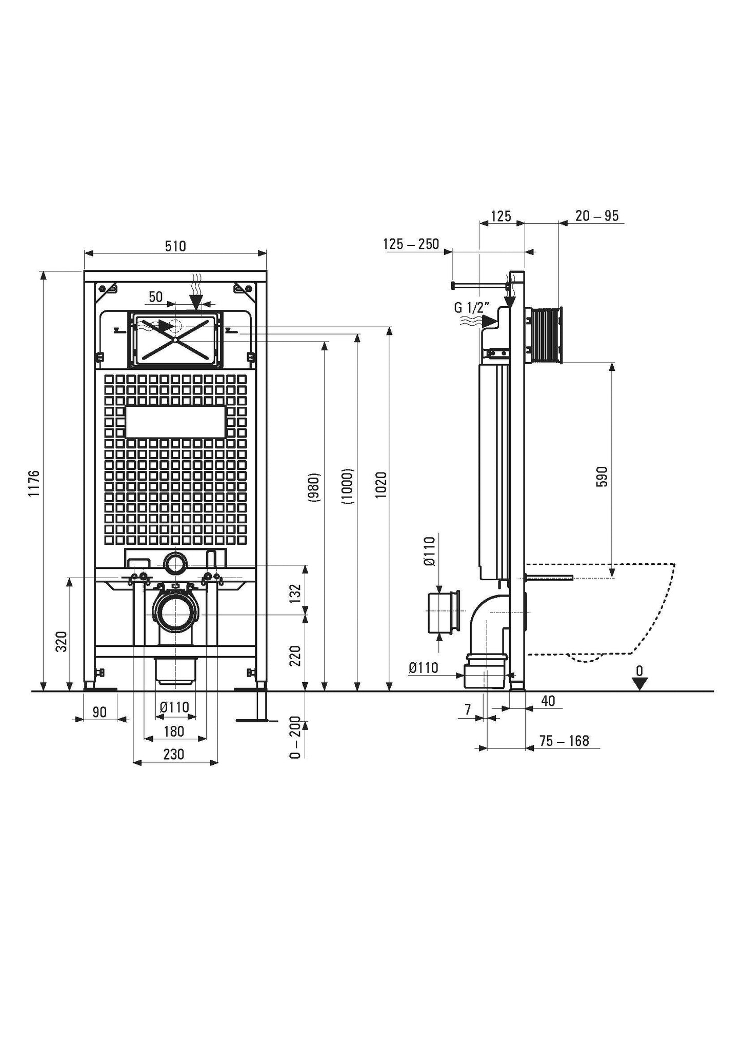 - Zweiteilige Betätigungsplatte mit Spülmengenwahl – werkseitig auf 3 l und 6 l eingestellt