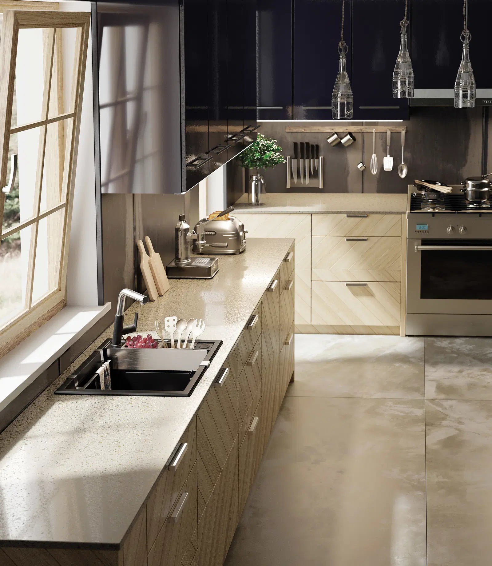 Gebürsteter Edelstahl ist eine Oberfläche, die sich vielseitig in unterschiedlichen Einrichtungsstilen einsetzen lässt. Wenn du keine glänzenden Elemente in deinen Räumen magst, ist dieses Finish die perfekte Wahl. Zudem ist diese Art der Oberfläche besonders pflegeleicht und einfach sauber zu halten.