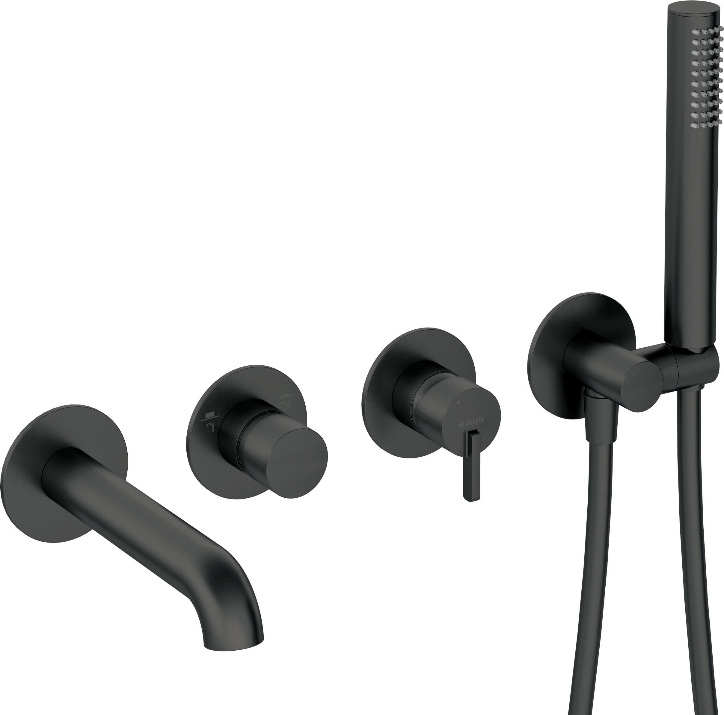 DEANTE Silia 4-Loch-Wannenarmatur mit Brausegarnitur Unterputz // Nero // BQS-N18P