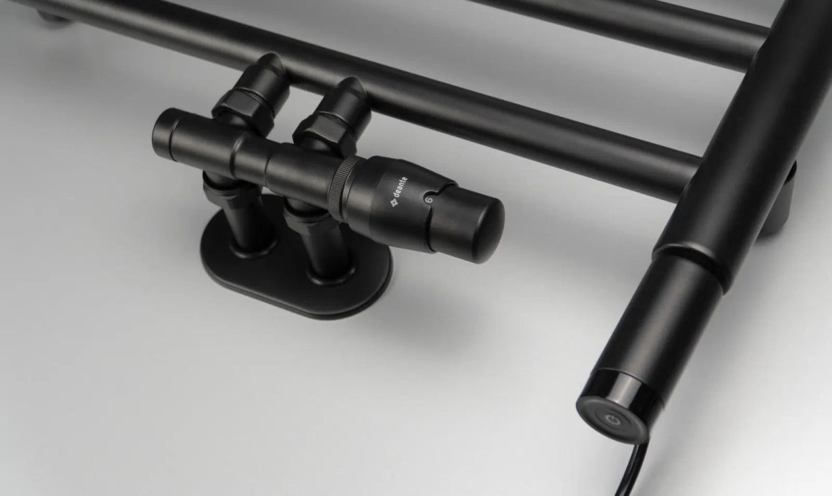 Dieser stilvolle Badheizkörper im Format 1210 × 500?mm zeichnet sich durch fließende Linien und ein außergewöhnliches mattschwarzes Finish aus. Er verfügt über einen funktionalen Haken für Handtücher oder einen Bademantel, was ihn besonders praktisch macht. Es handelt sich um ein Hybridmodell – wasser- und elektrobetrieben –, das die Montage einer 400-Watt-Heizpatrone erlaubt. Diese sorgt außerhalb der Heizperiode für zusätzliches Heizen oder das Trocknen von Handtüchern. Zum Heizkörper muss ein separates Ventil erworben werden. Sowohl die optionale Heizpatrone als auch das erforderliche Ventil sind in der gleichen Farbe wie der Heizkörper erhältlich.