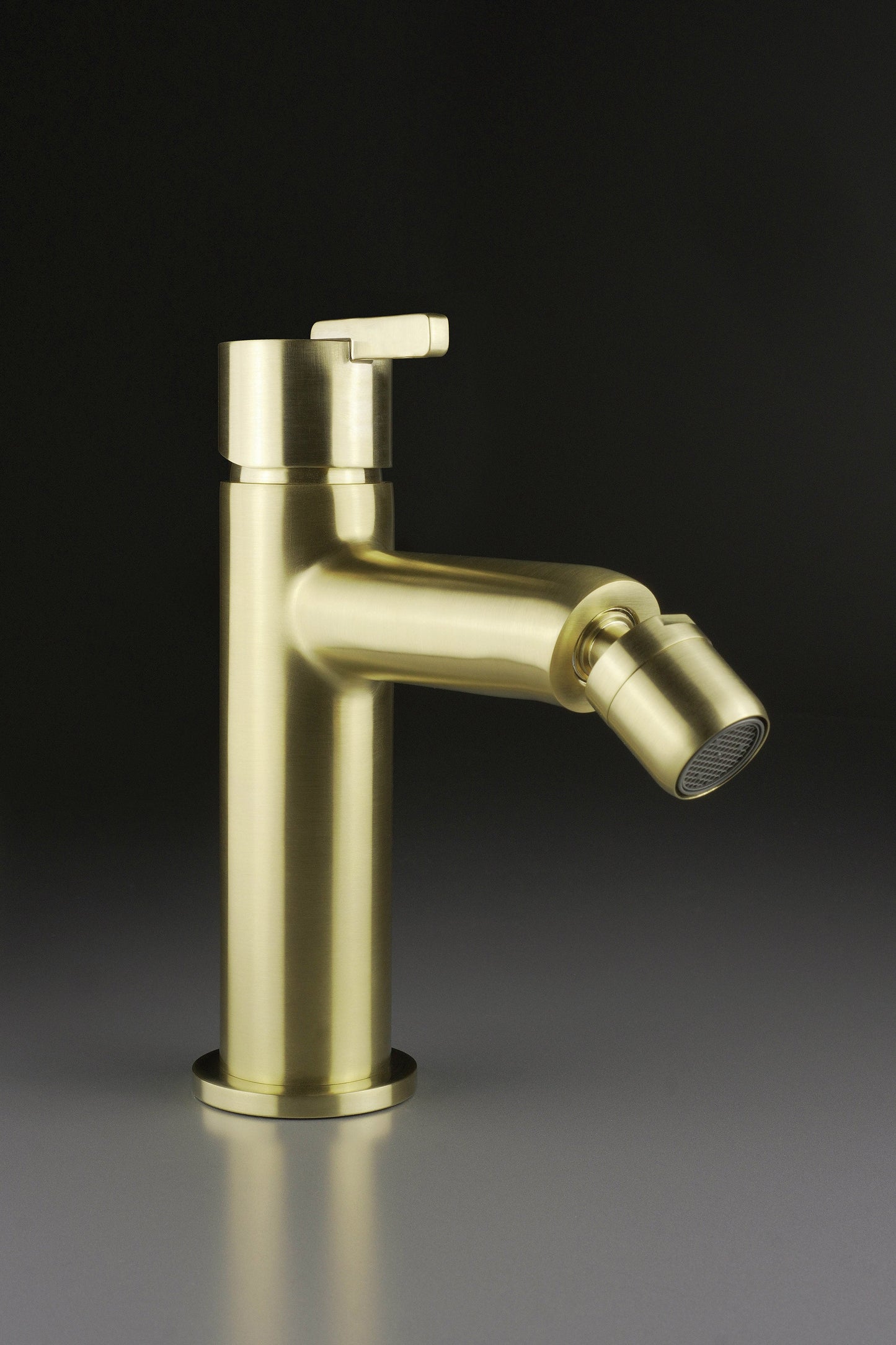 Bidetarmatur aus der Designkollektion Silia. Sie besteht aus langlebigem Messing und ist mit einer Keramikkartusche ausgestattet. Silia ist eine Neuinterpretation eines der klassischsten Modelle in der Geschichte der Badarmaturen. Die gesamte Serie ist von der Form eines gebogenen Rohrs inspiriert, wodurch alle Produkte weich und abgerundet wirken. Die Bidetarmatur verfügt über ein bewegliches Auslaufende, mit dem der Wasserstrahl flexibel gelenkt werden kann. Sie ist in einem trendigen gebürsteten Gold-Finish ausgeführt.
