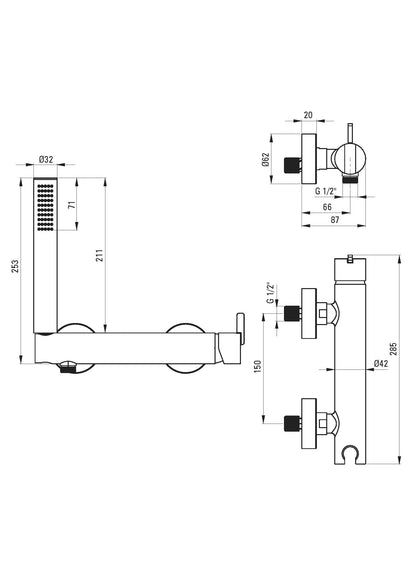 DEANTE Silia Duscharmatur mit Brausegarnitur // gebürsteter Stahl // BQS-F41M
