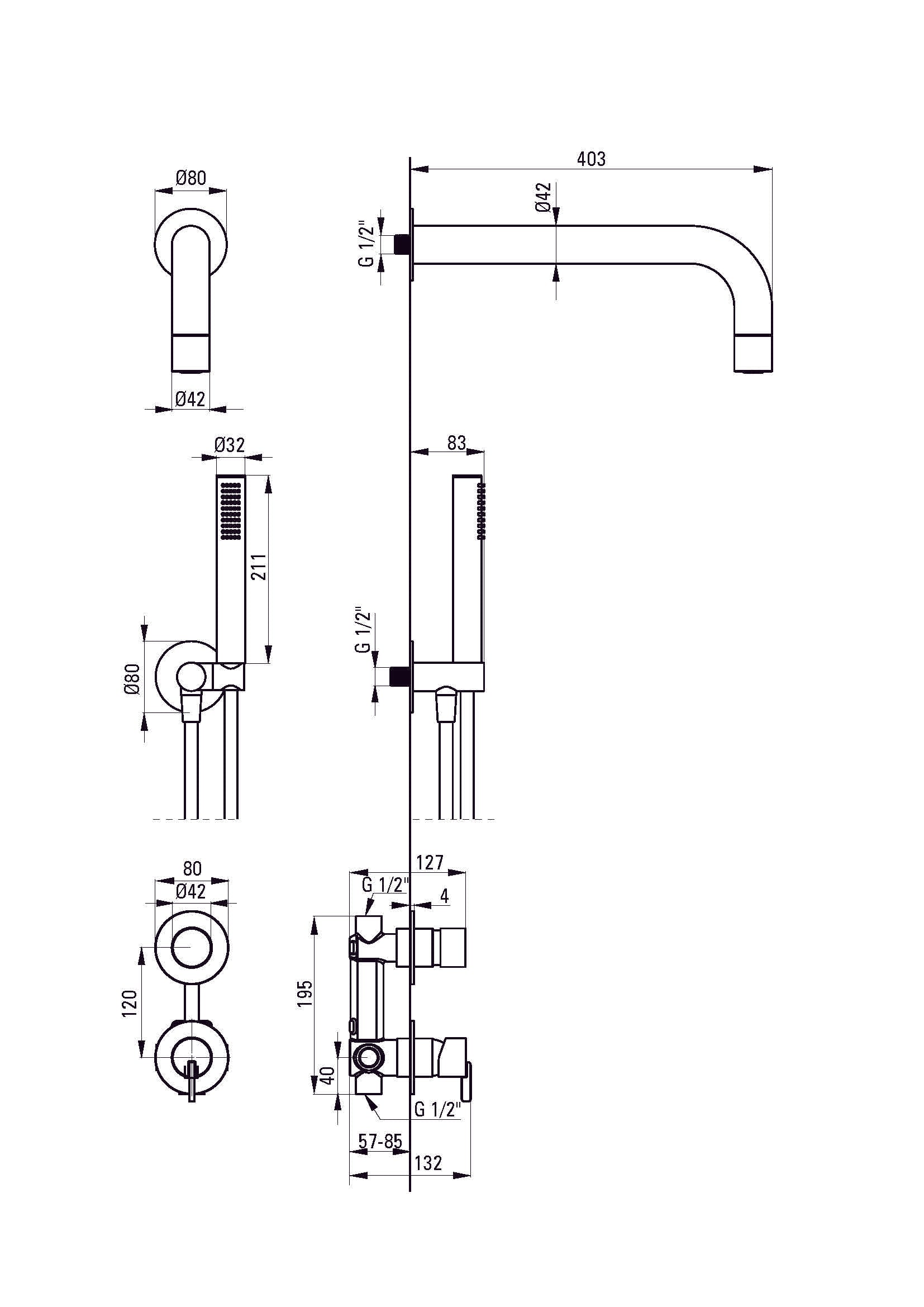 | Anschlusart | für Schlauch mit Handbrause-Halterung |