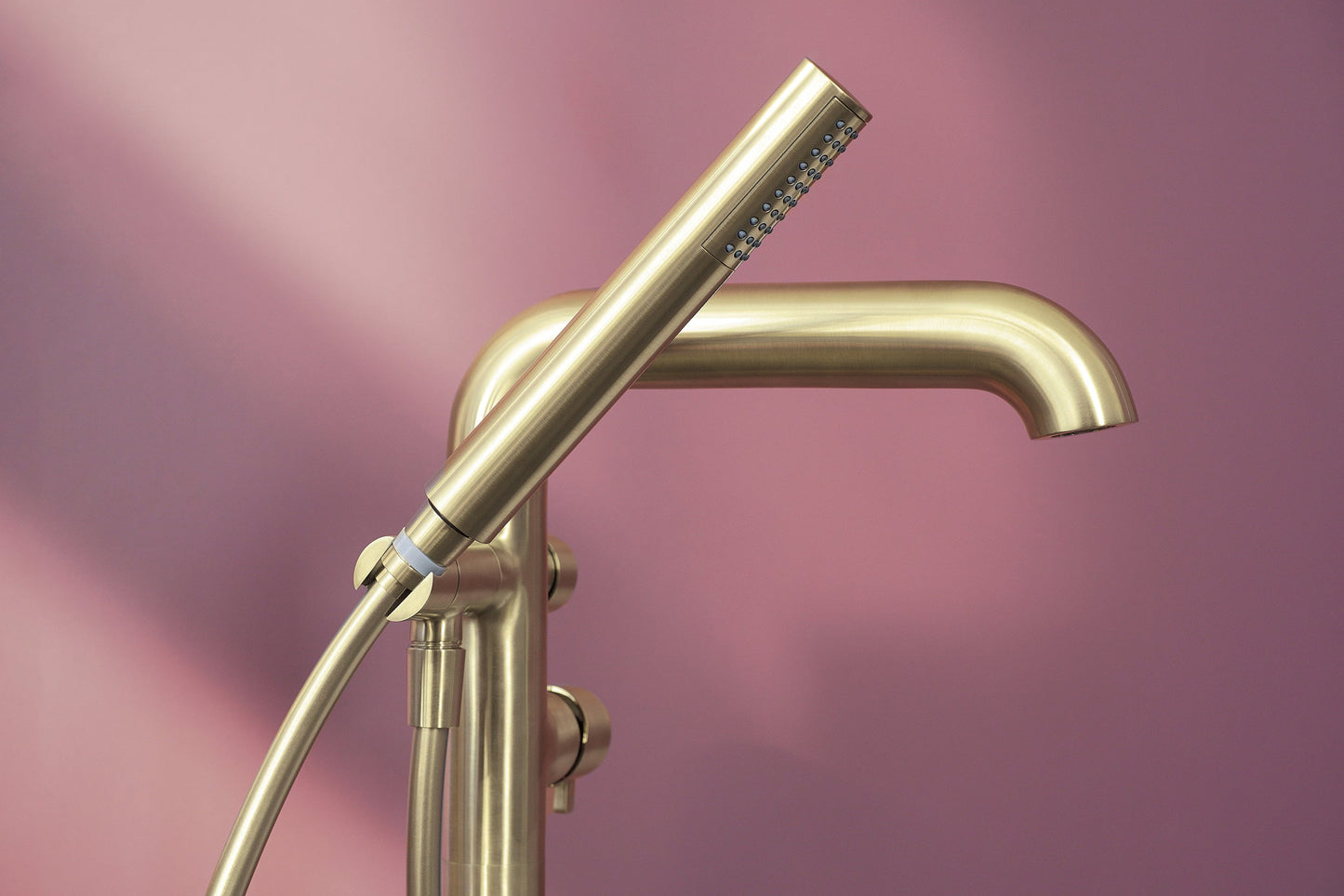 Die Standarmatur Silia ist speziell für freistehende Badewannen konzipiert. Sie ist mit einem Silikon-Aerator, einem Brauseschlauch mit Anti-Twist-System sowie einer Handbrause mit angenehm weichem Regenstrahl ausgestattet – für höchsten Komfort im täglichen Gebrauch. Der massive Messingkörper und die keramische Kartusche garantieren Langlebigkeit und zuverlässige Funktion. Der verstellbare Neigungswinkel der Handbrause und der mechanische Funktionsumschalter mit Keramikeinsatz machen dieses Modell nicht nur zu einem Designhighlight, sondern auch zu einer besonders praktischen Lösung für Ihr Badezimmer. Das angesagte Finish in gebürstetem Gold verleiht der Armatur eine elegante, moderne Note und unterstreicht den exklusiven Charakter Ihrer Badgestaltung.