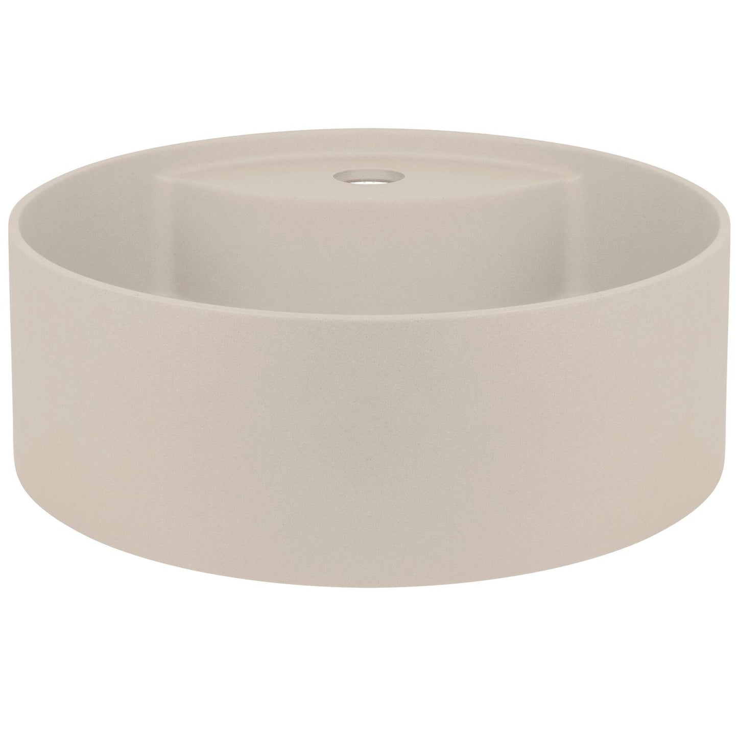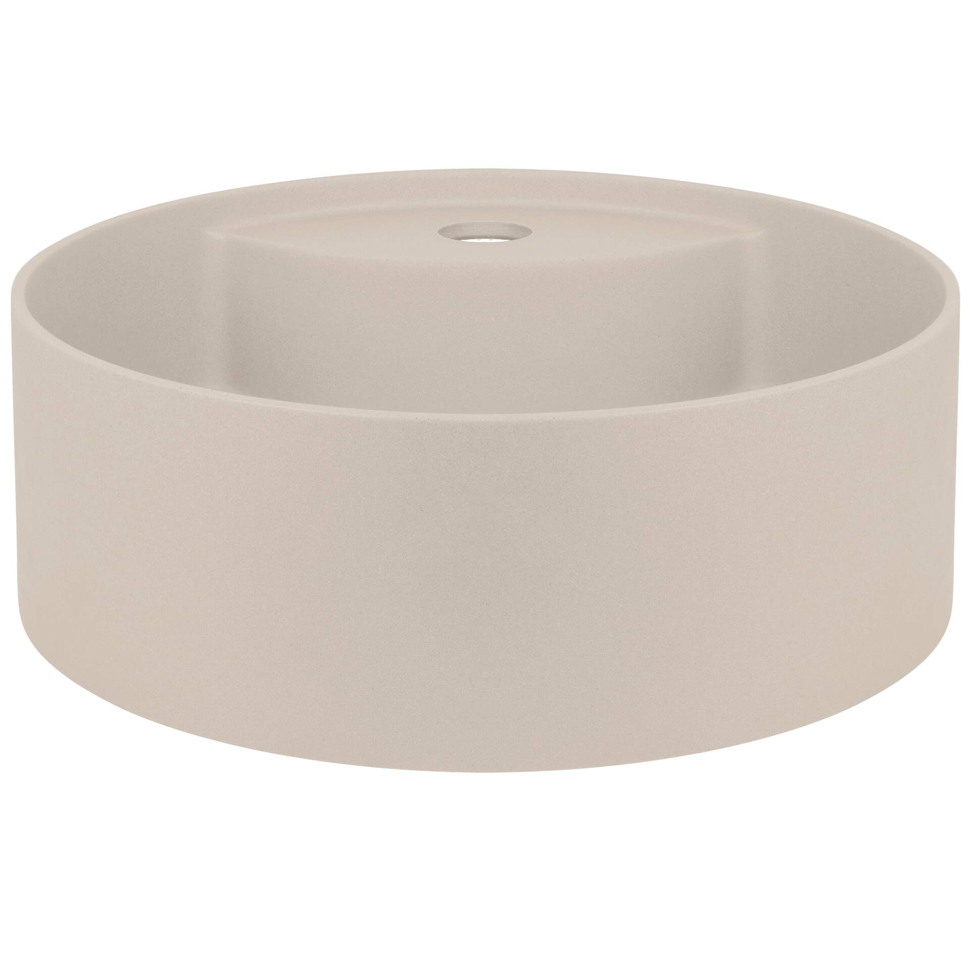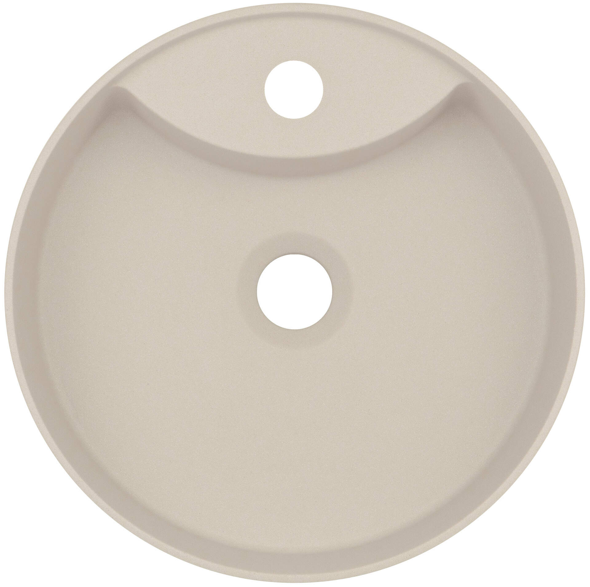 Das runde Granitwaschbecken Silia verfügt über eine integrierte Armaturenbank für die Montage einer Standarmatur. Durch die kompakte Größe eignet es sich auch ideal für kleinere Badezimmer. Der Verzicht auf einen Überlauf sorgt für eine besonders glatte Oberfläche, die leicht zu reinigen ist. Die beige Farbgebung verleiht dem Raum eine warme und sanfte Ausstrahlung. Kombiniert mit der passenden Waschtischkonsole aus derselben Kollektion entsteht eine harmonische Badgestaltung.