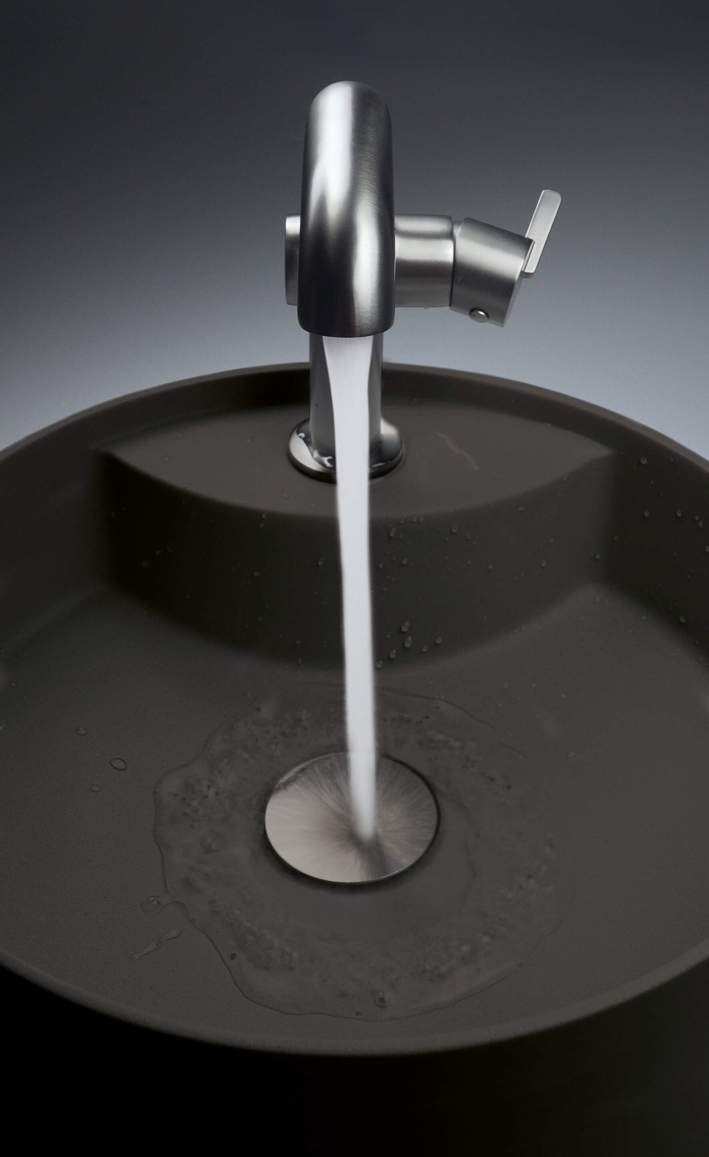 Das runde Granitwaschbecken Silia verfügt über eine integrierte Armaturenbank für die Montage einer Standarmatur. Mit ihren kompakten Abmessungen passt sie perfekt in großzügige wie auch kleinere Badräume. Der Verzicht auf einen Überlauf sorgt für eine durchgehend glatte Oberfläche, die sich besonders leicht reinigen lässt. In Kombination mit der passenden Waschtischkonsole aus derselben Serie ergibt sich ein harmonisches und stimmiges Badezimmerkonzept.