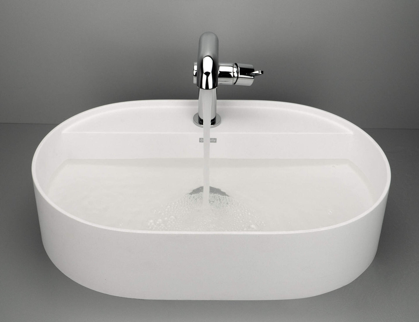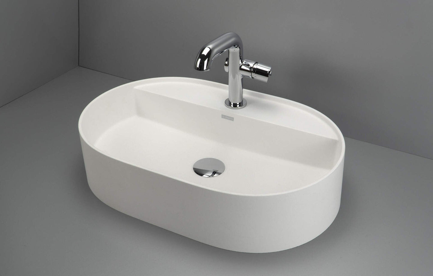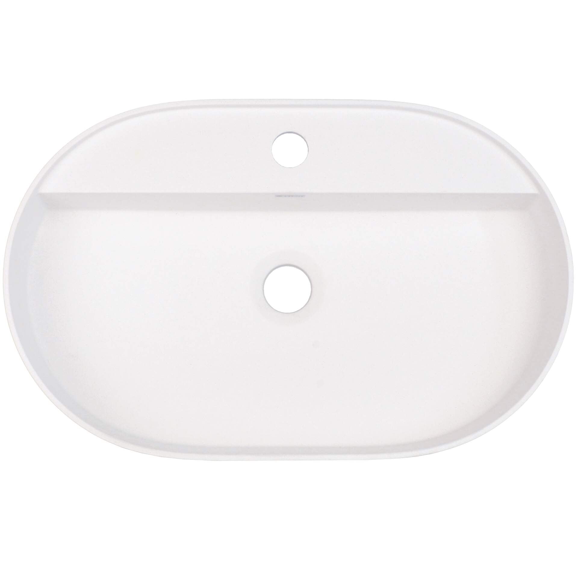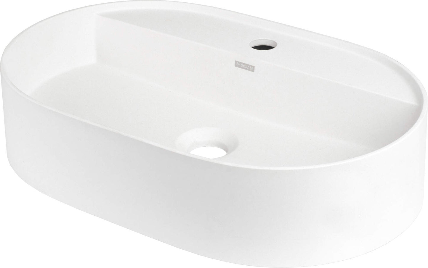 DEANTE Silia Granit-Aufsatzwaschbecken mit Armaturenbank - Oval // Alabaster // CQS-AU6B