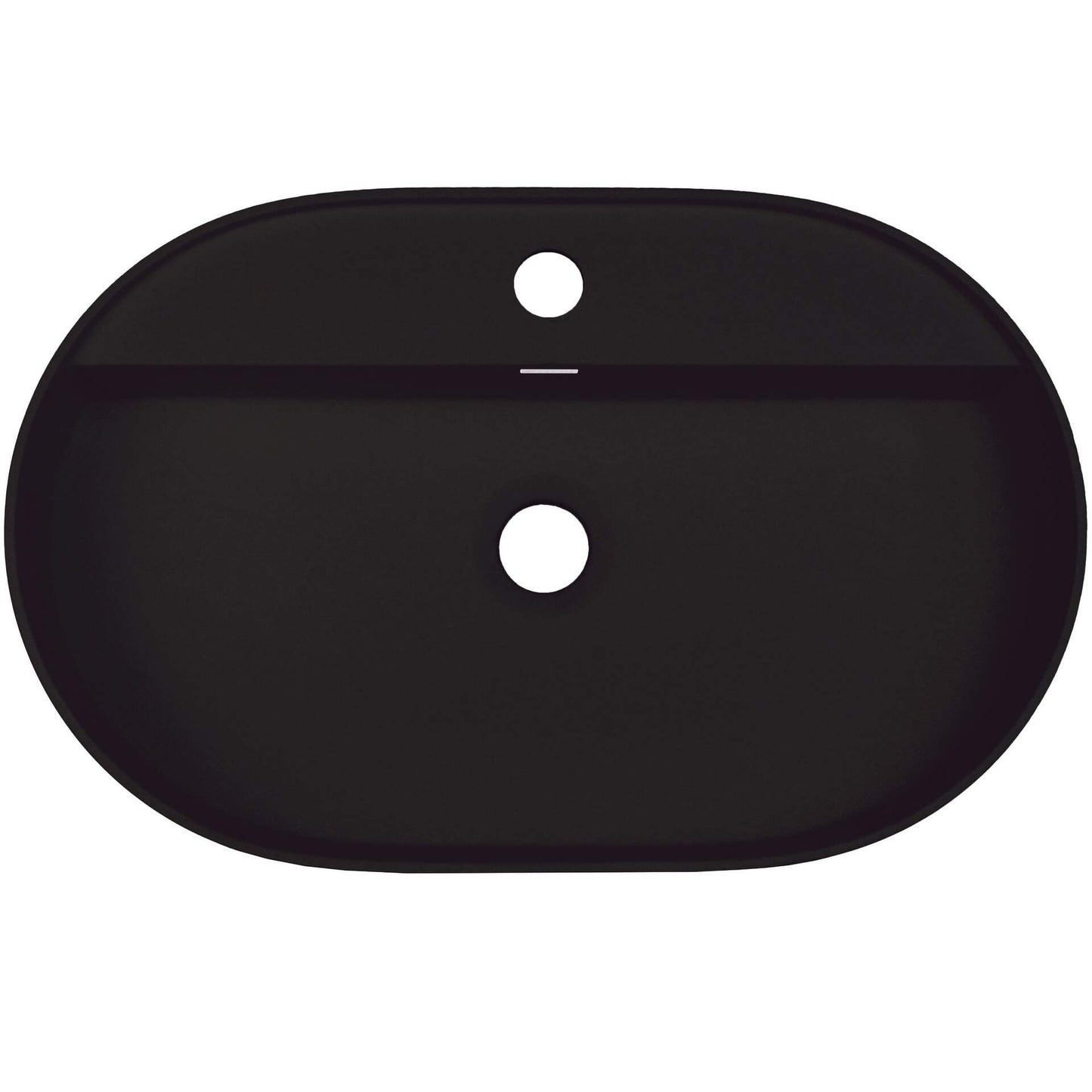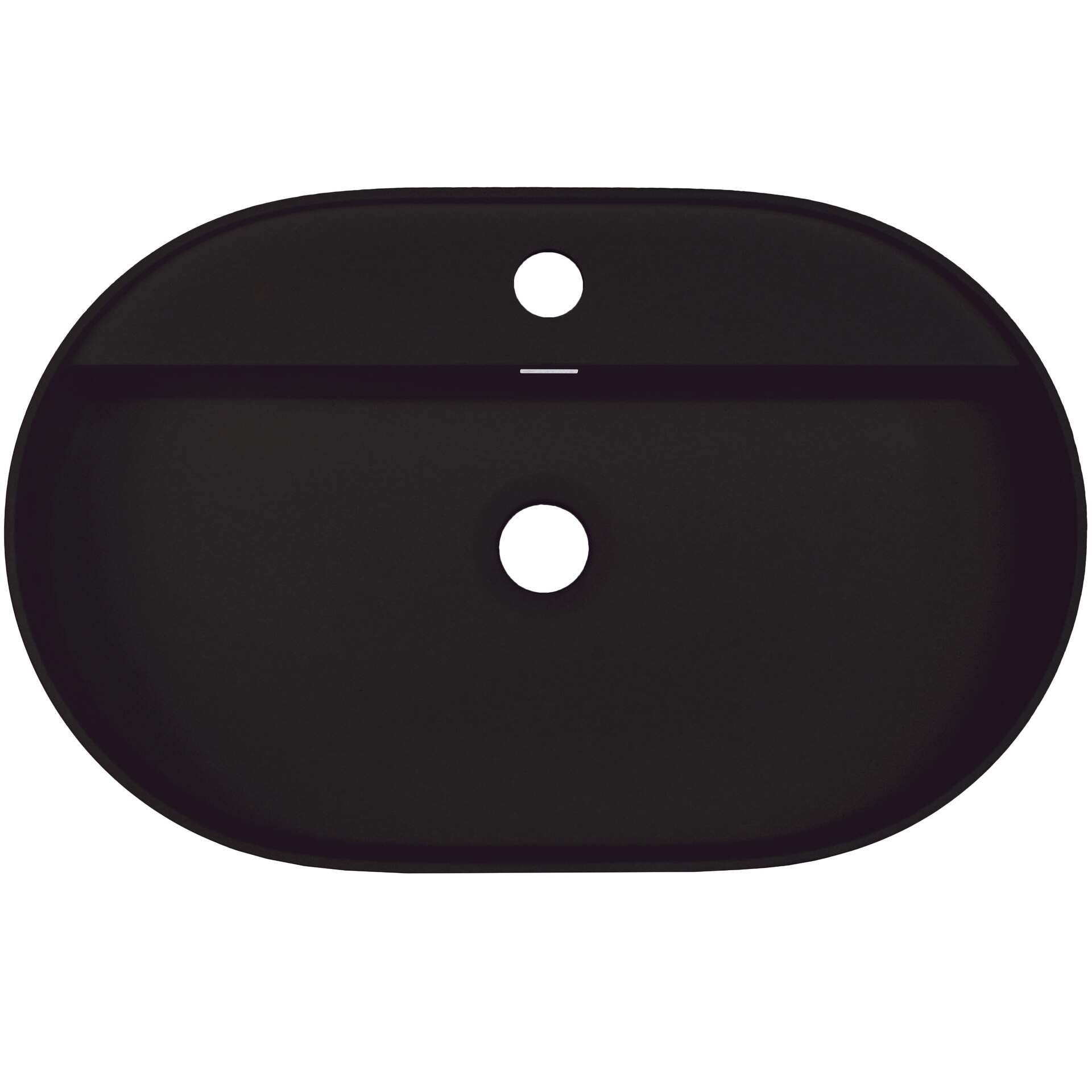 DEANTE Silia Granit-Aufsatzwaschbecken mit Armaturenbank - Oval // Nero // CQS-NU6B