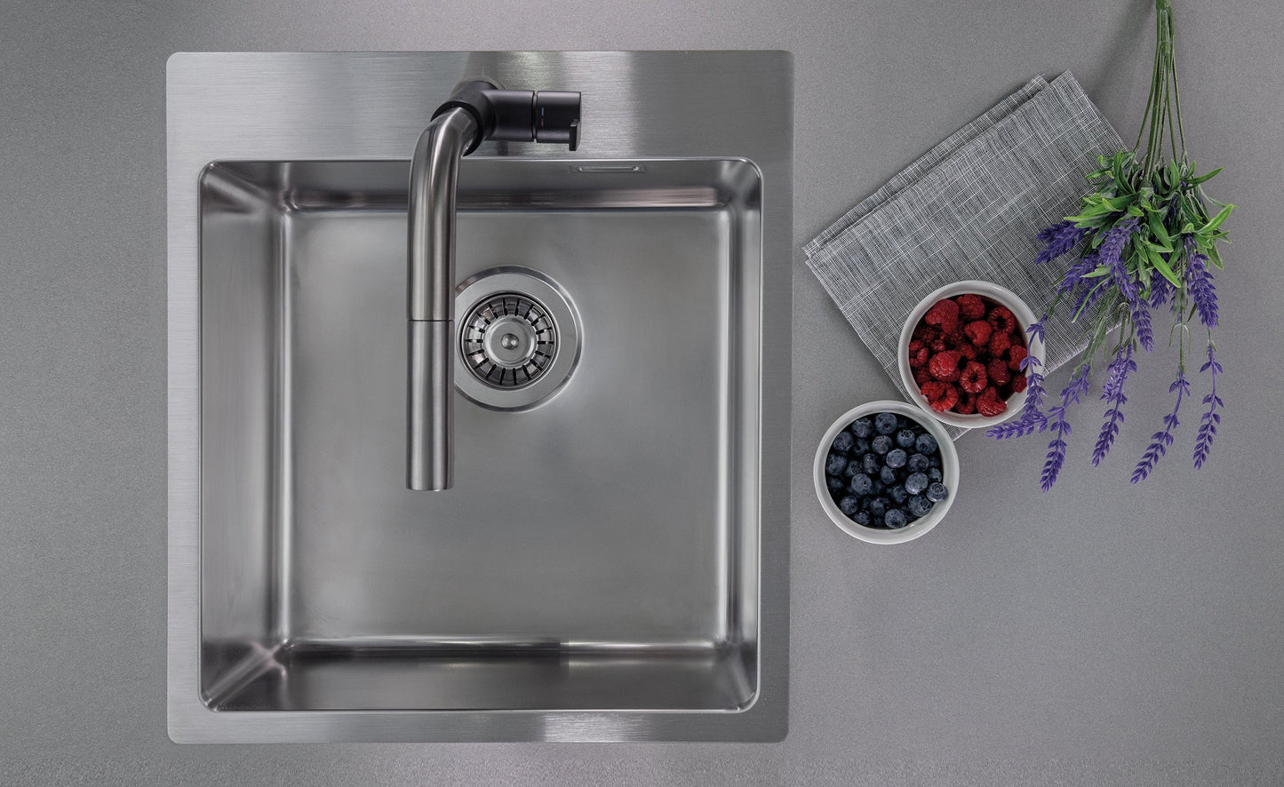 Die Armatur ist mit einem Perlator ausgestattet, der den Wasserstrahl belüftet.