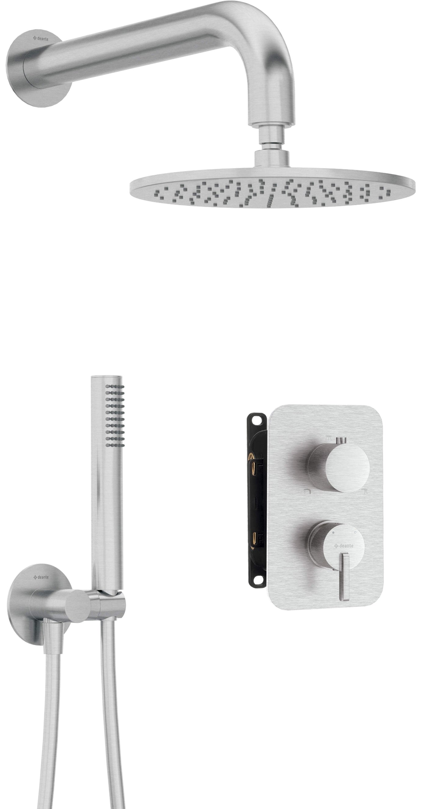 DEANTE Silia Unterputz-Duschset mit Mischbox und Kopfbrause // gebürsteter Stahl // BXYYFQSM