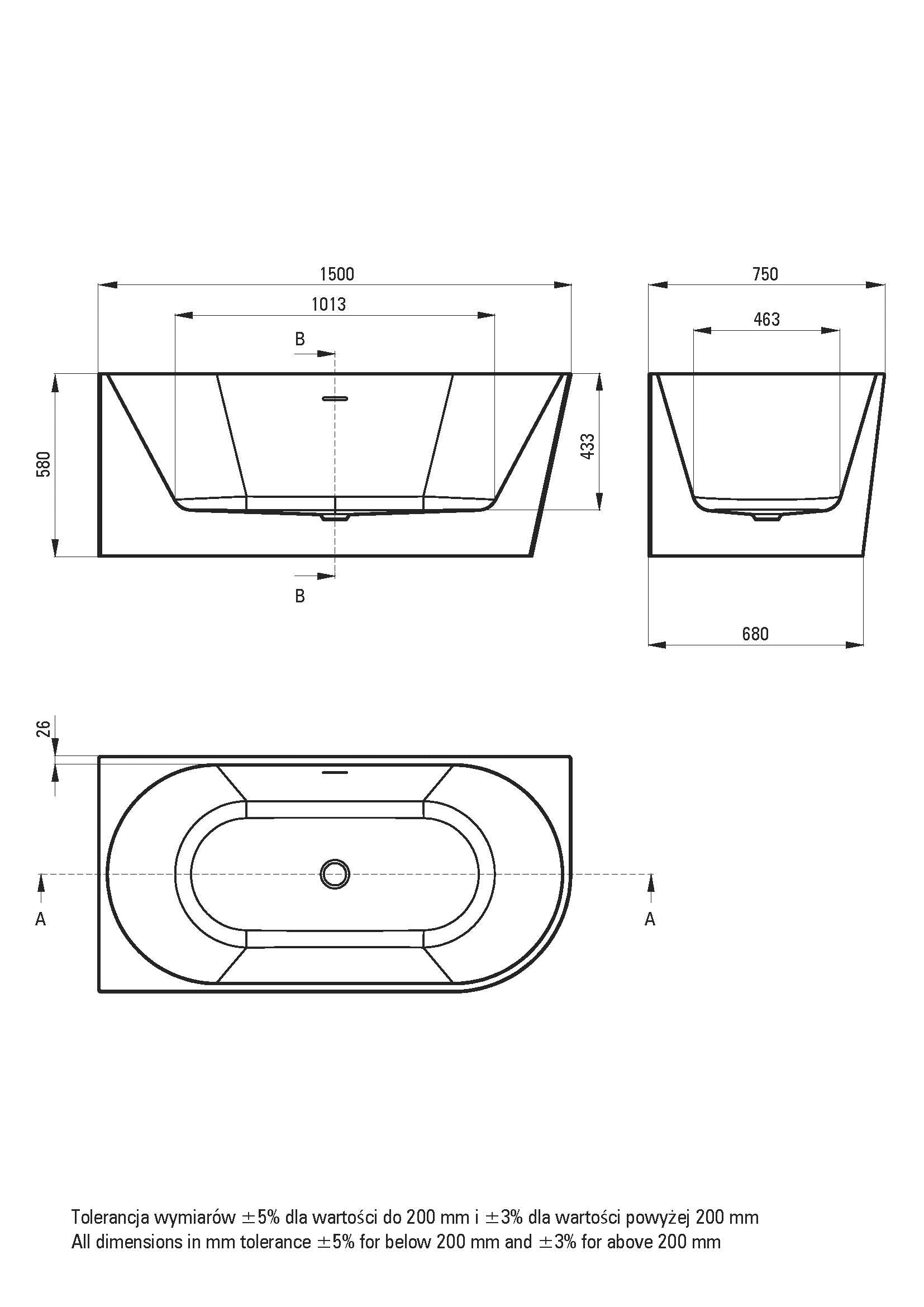 DEANTE Silia Wand- oder Freistehende Badewanne - Links - 150 cm // Weiß // KDS-015L