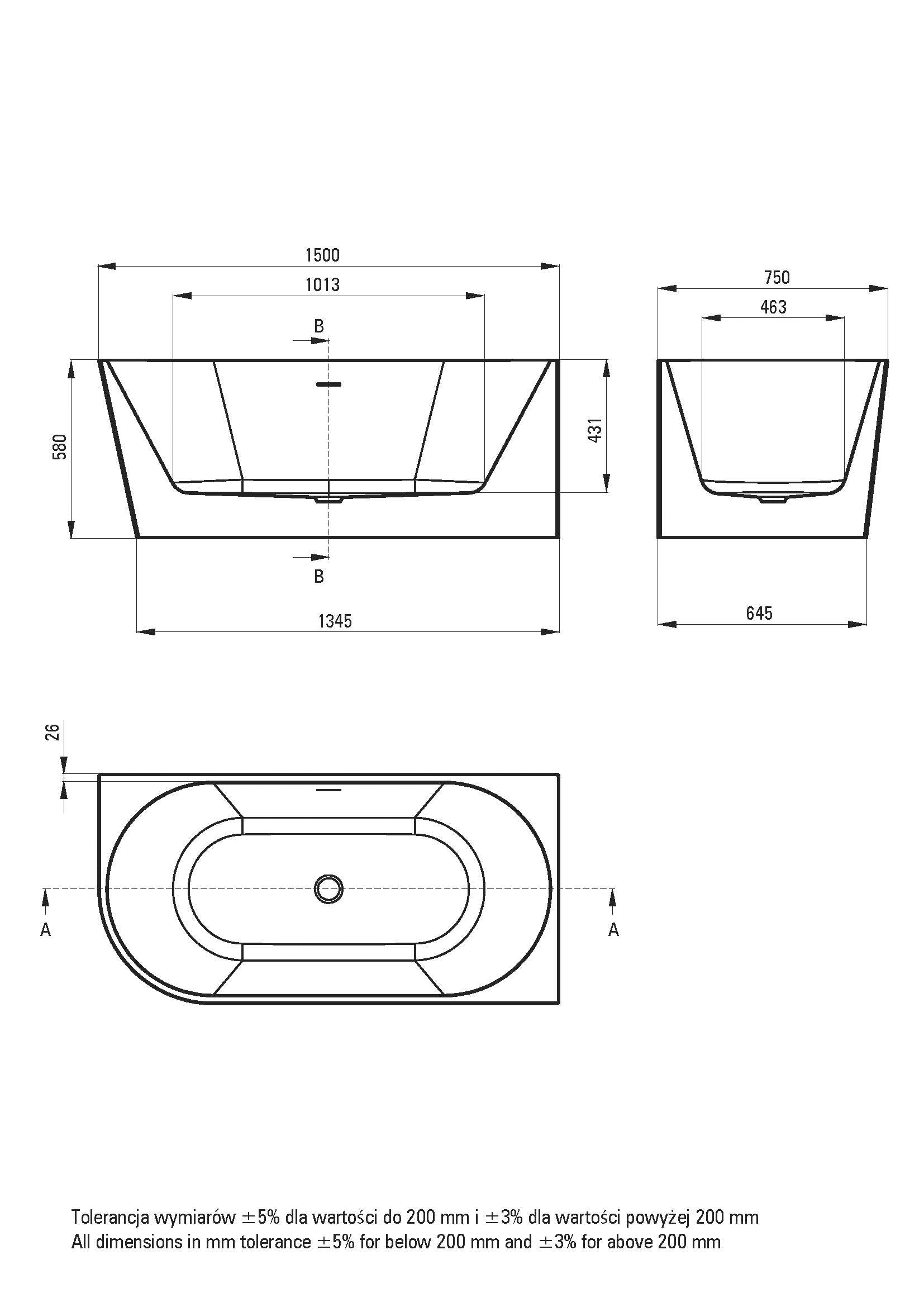 DEANTE Silia Wand- oder Freistehende Badewanne - Rechts - 150 cm // Weiß // KDS-015P